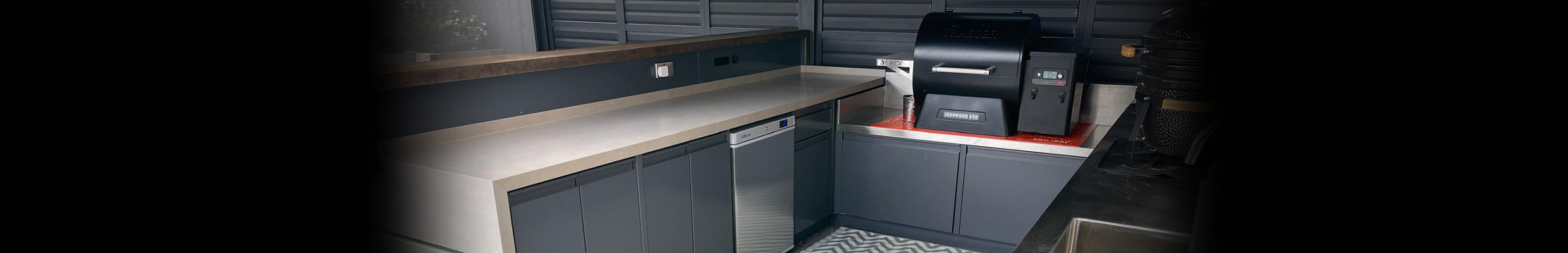 A private domestic client in Northumberland approached Stellex with a brief to design and manufacture a high-quality outdoor kitchen and bar that combined contemporary aesthetics with robust construction suitable for year-round outdoor use. The finished installation needed to offer practical cooking and storage facilities while remaining visually impressive as the centrepiece of the client’s garden.